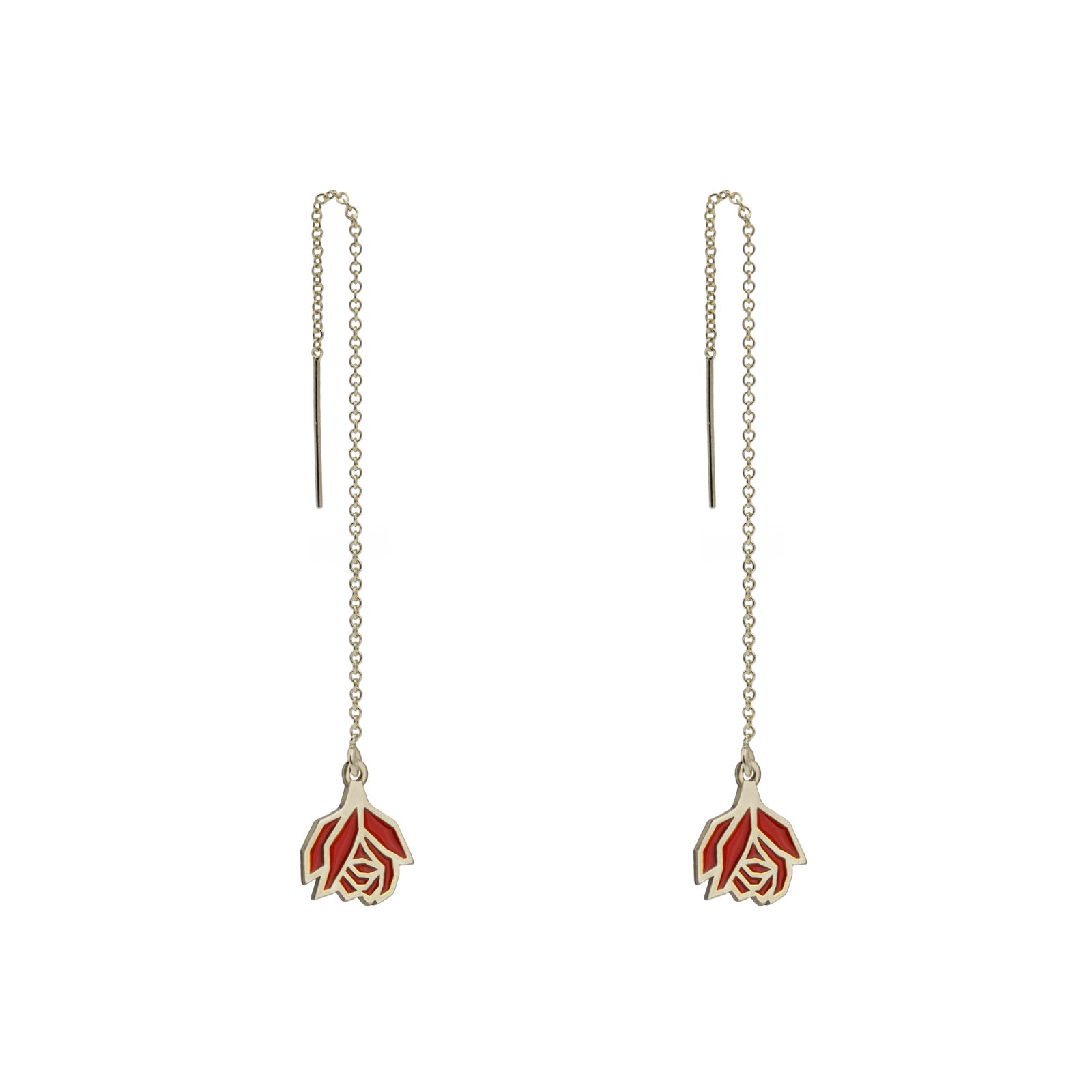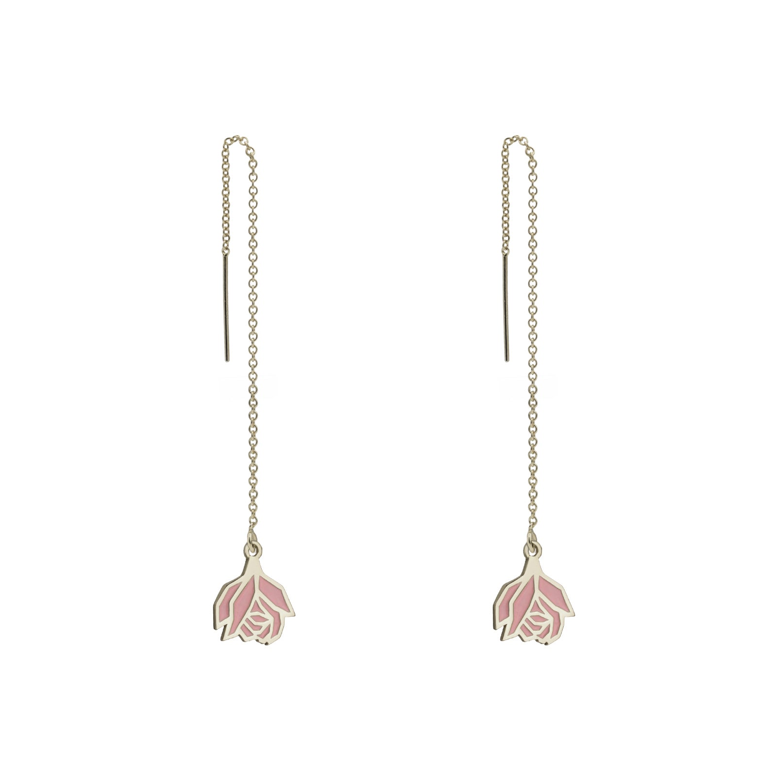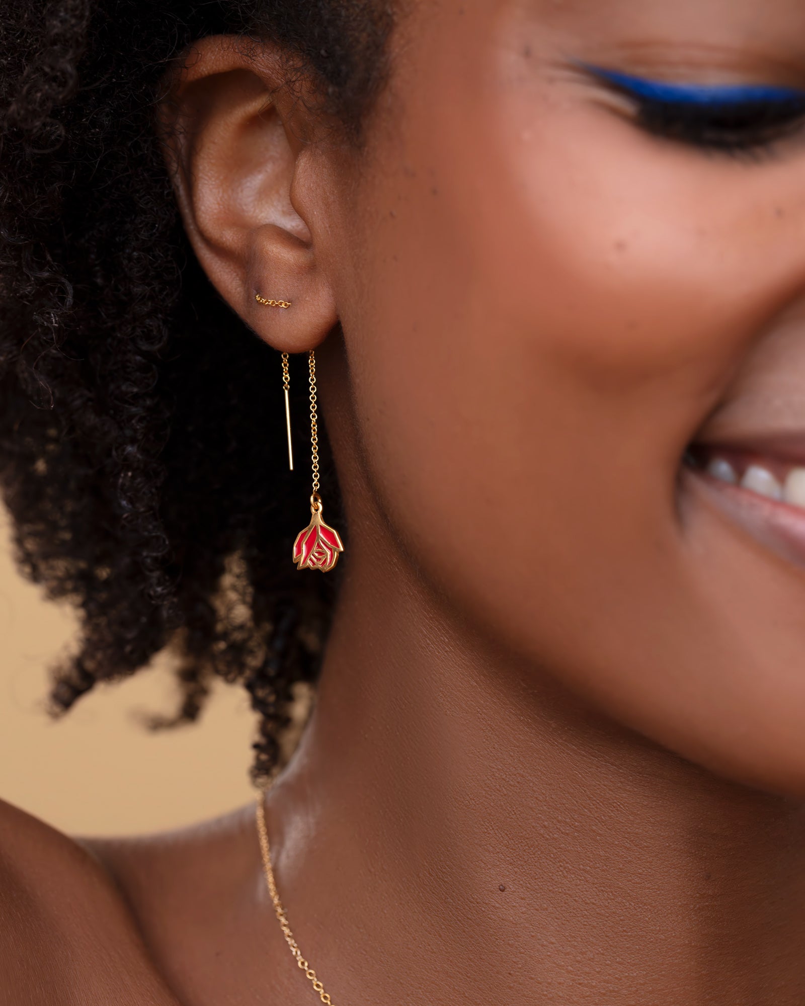 These sterling silver ear threaders feature a modern rose swaying gracefully from your ears. The rose is the most universally used flower to express love and passion. It is omnipresent in Shakespeare’s work, here is an extract from Romeo and Juliet: “is love a tender thing? It is too rough, too rude, too boisterous, and it pricks like thorn”. The Grimm brothers also named the “Little Briar Rose” that later inspired Disney to create the Sleeping Beauty.