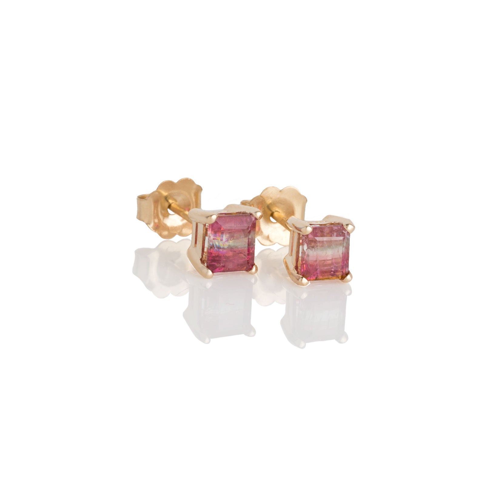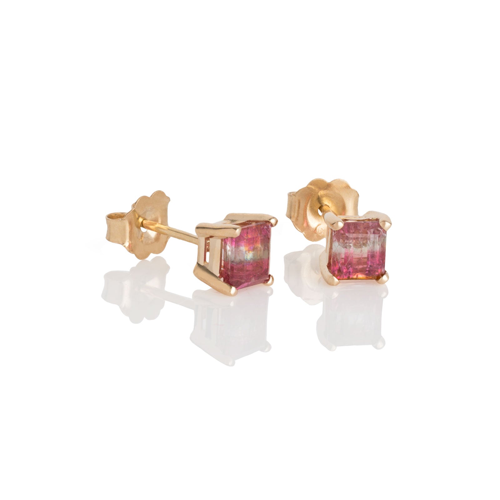Each square shaped bicolor tourmaline is about 5mm wide and the pair totals 1.25 carats.