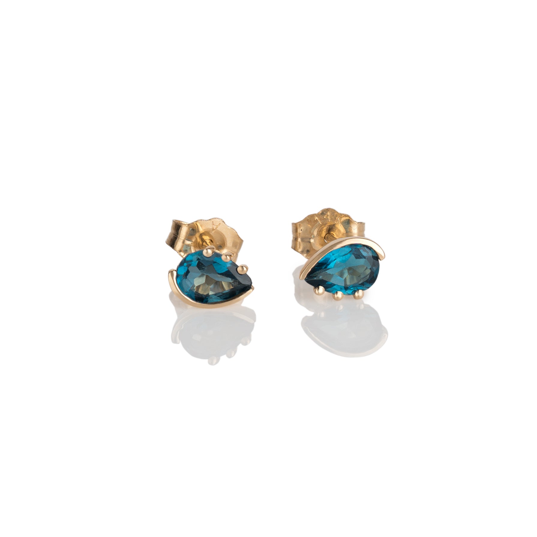These eye-shaped studs feature two pear shape London blue topaz of size 6 mm by 4 mm. For pear shape fine jewelry, make sure to take a look here.