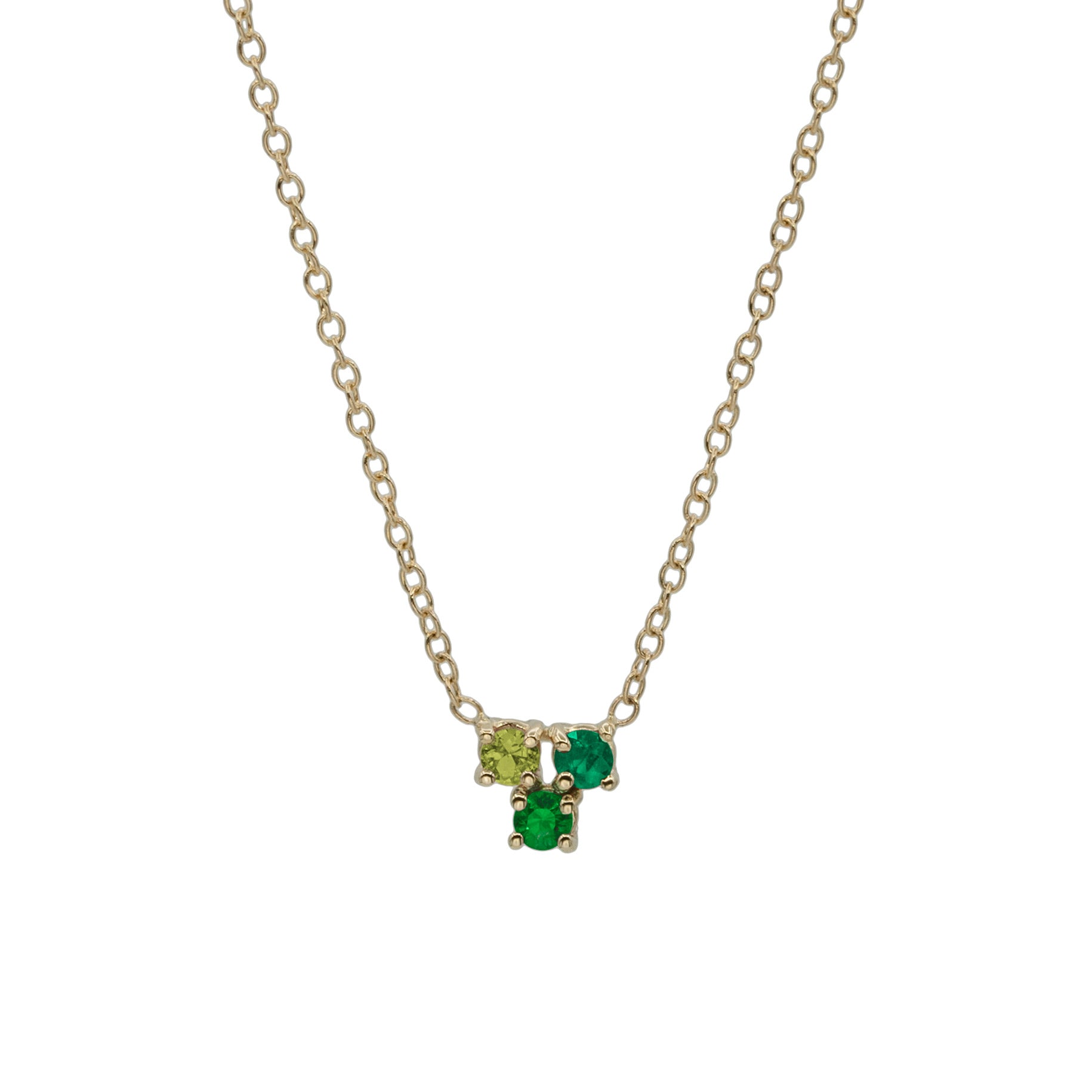 Meet your new everyday classic that you will not want to ever take off. The dainty gemstones trio goes with every outfit from the casual white t-shirt to the little black dress. It is a simple yet very elegant and the colors will add a sparkly pop to your neckline.