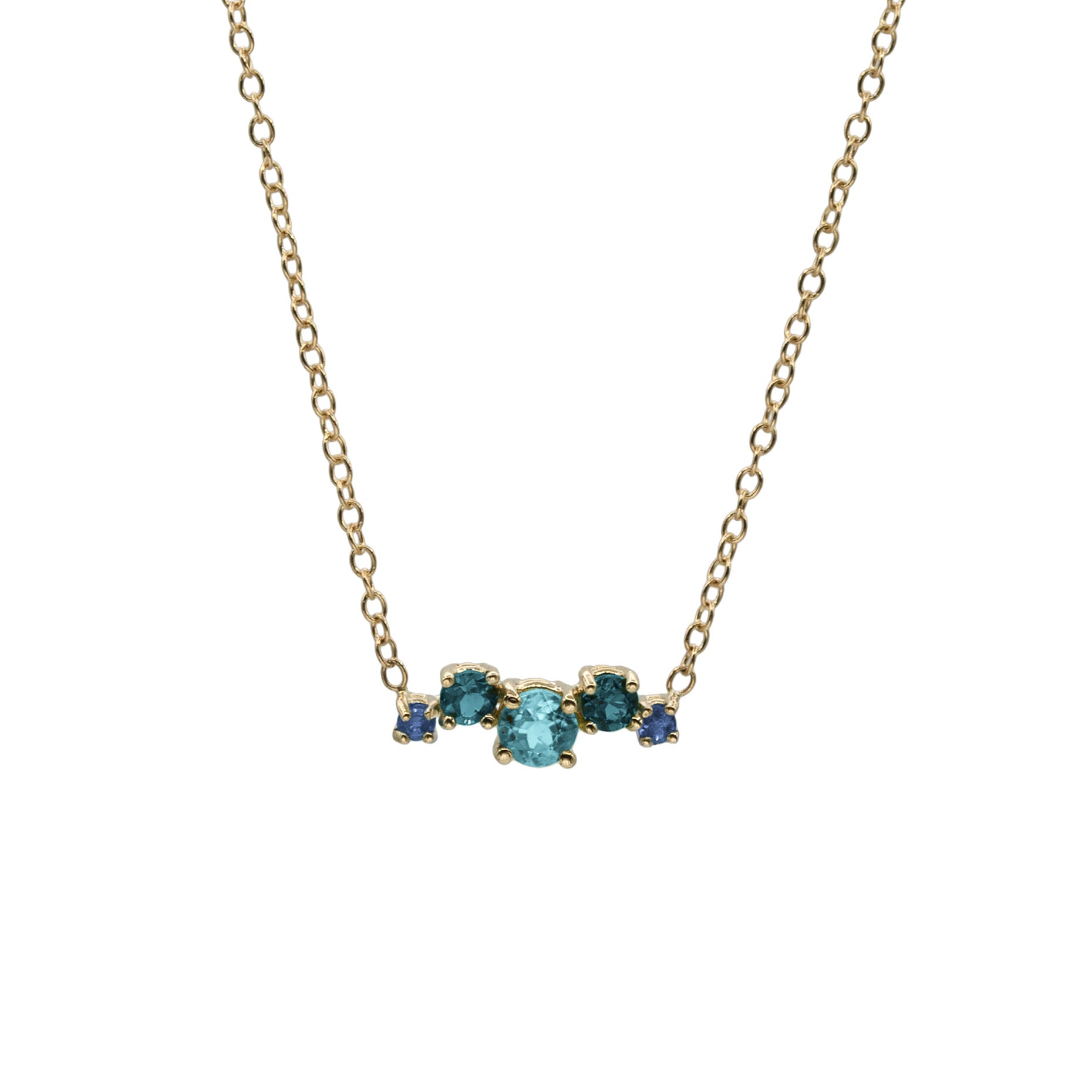 Precious variations within your favorite hue, this dainty gemstones cluster will bring effortless chic and dazzle to your neckline.