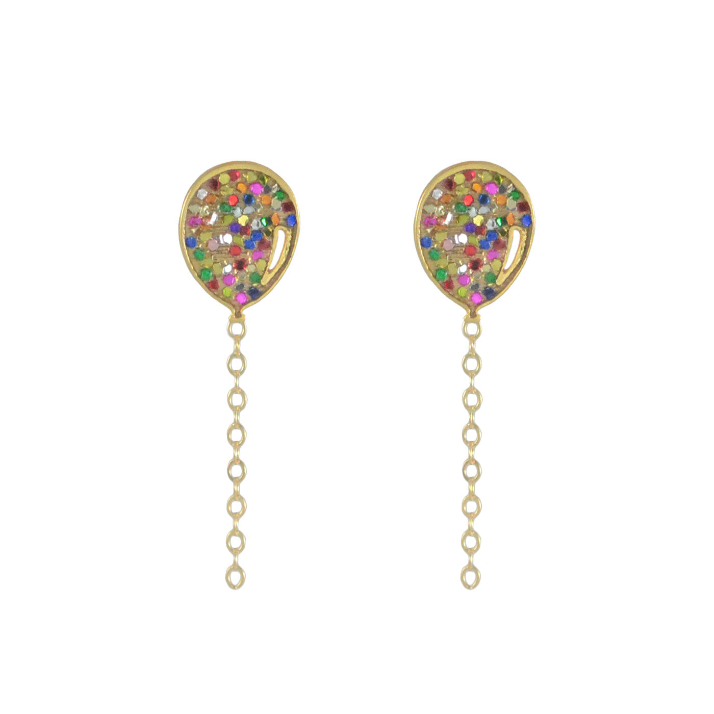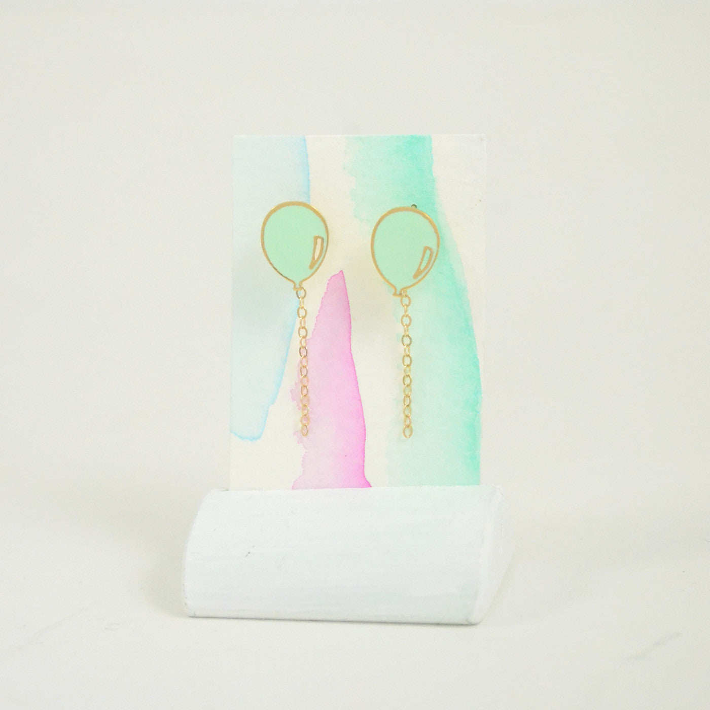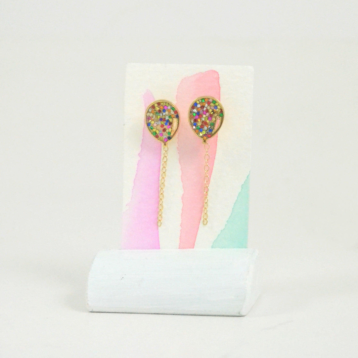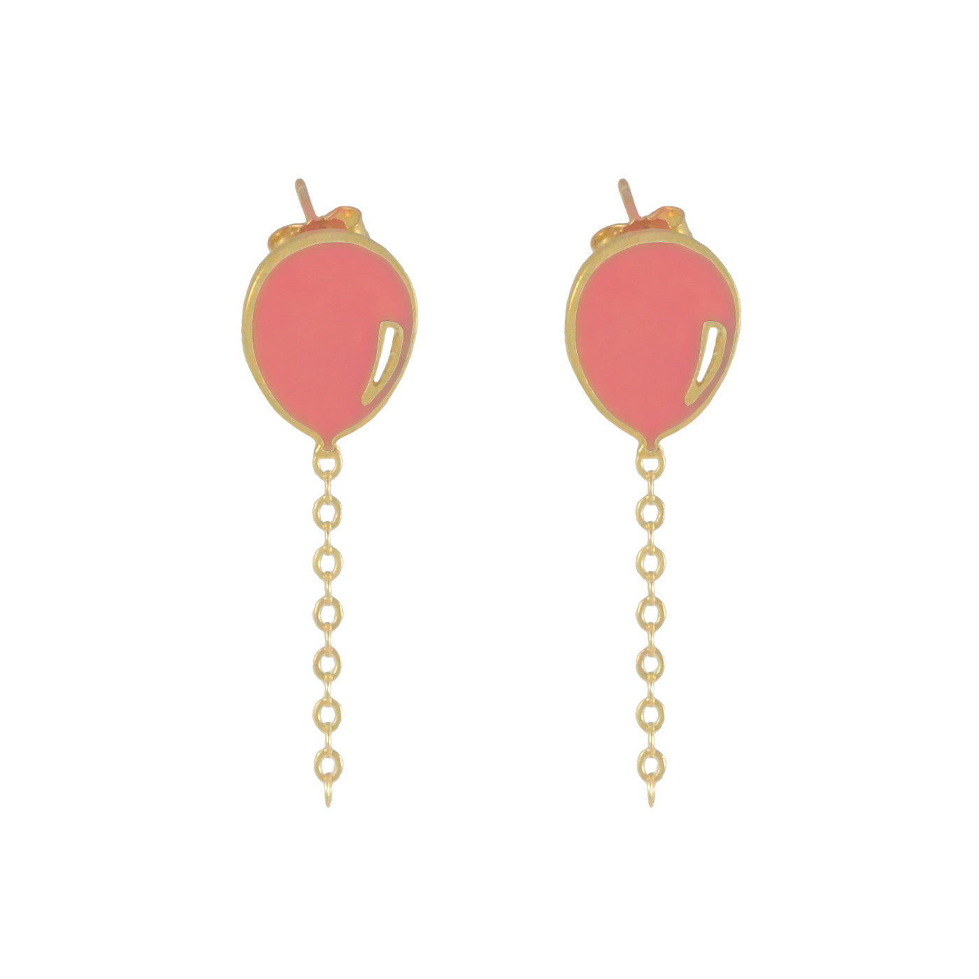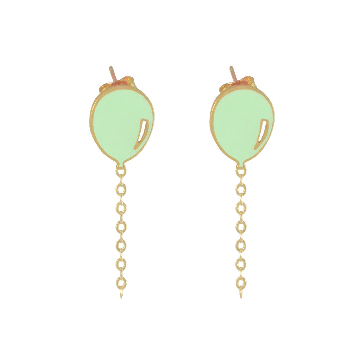 Inspired by festive days, these happy and colorful balloon earrings will add a dash of whimsy to your day. The little 14k gold fill chain dangles from the balloon stud piece and floats in the air just like strings attached to balloons do.