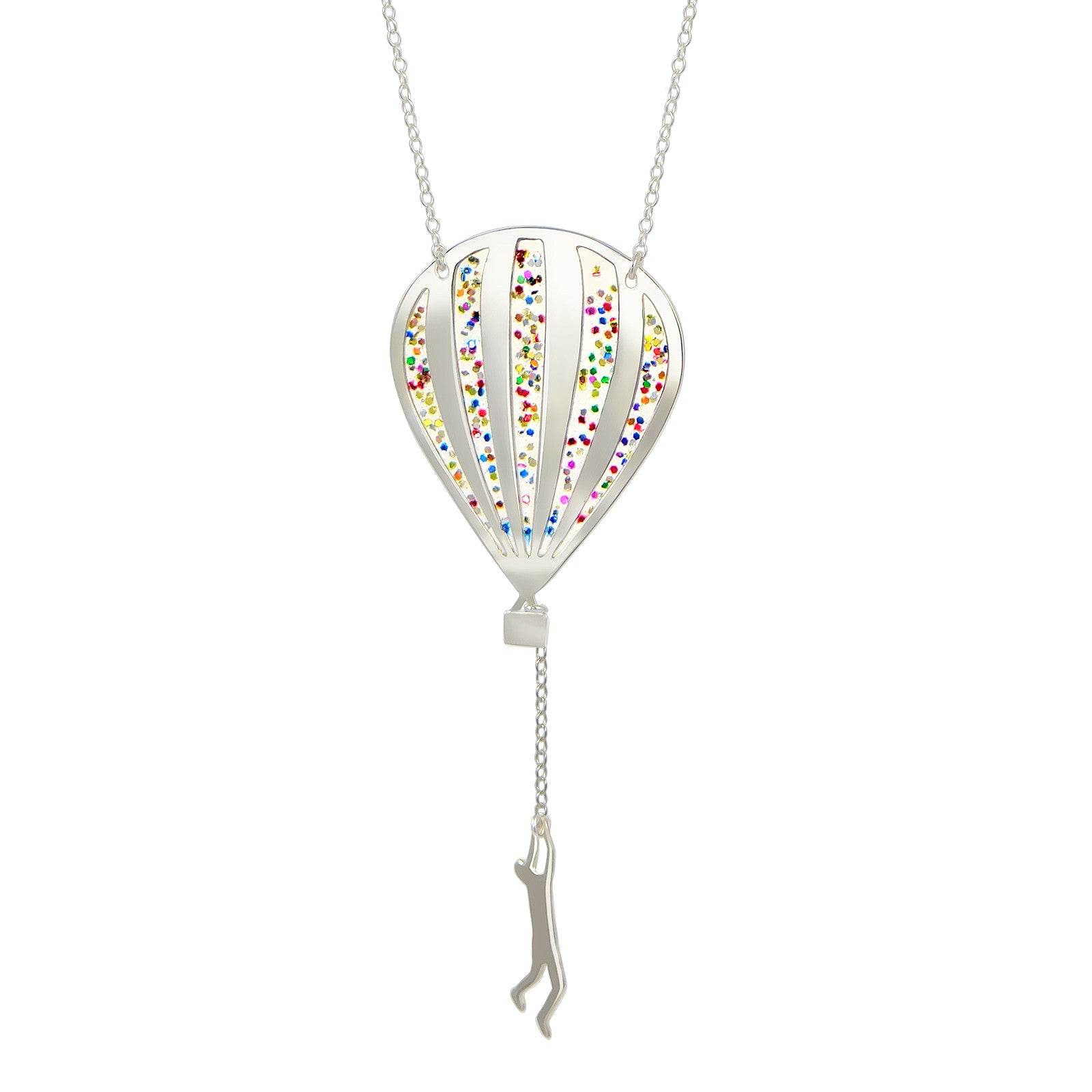 Turn that frown upside down, and soar through the clouds of your imagination. Sometimes the best escape is through the positivity of our own mind. When you put on the festive hot air balloon necklace, close your eyes and see yourself in the best possible place. Let the colorful glitter enamel dazzle your senses put you in a joyful dwelling filled with all the comforts that make you smile. Chart your course and redirect your thoughts!