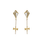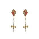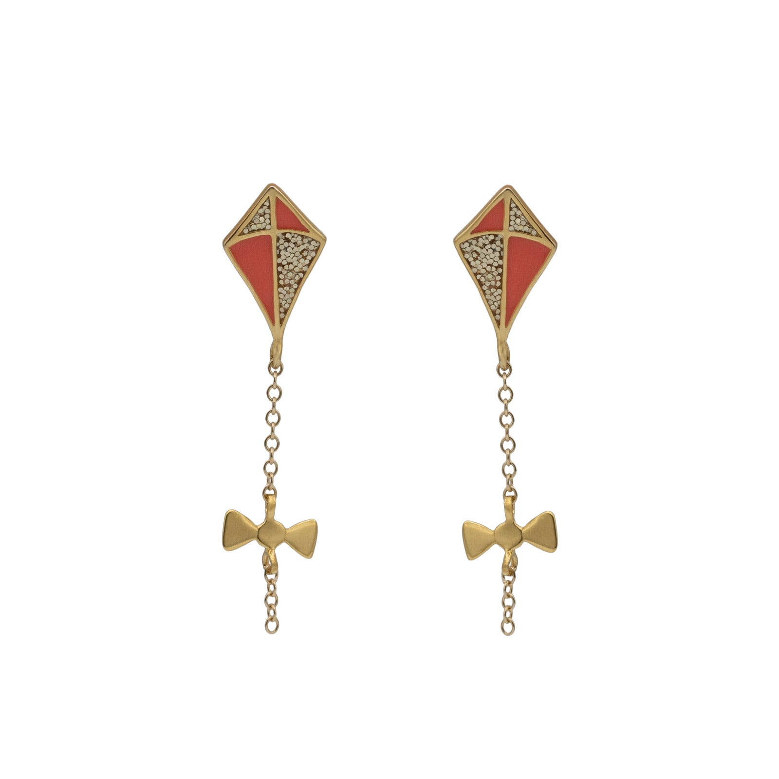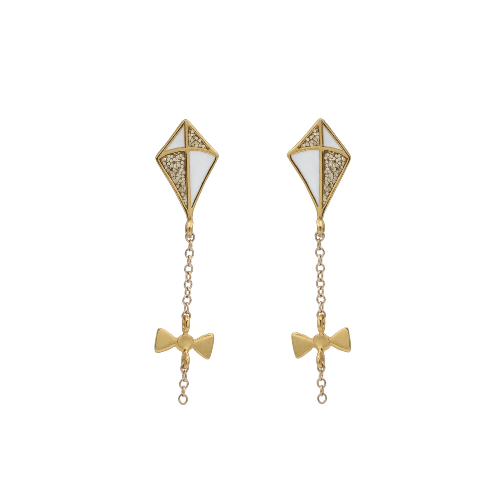 The dainty kite earrings will for sure lift your mood! They come in a variety of enamel colors that you can customize for your taste and outfit. They are very flattering for the face and feature a fun little bow dangling off a 14 k gold filled chain.