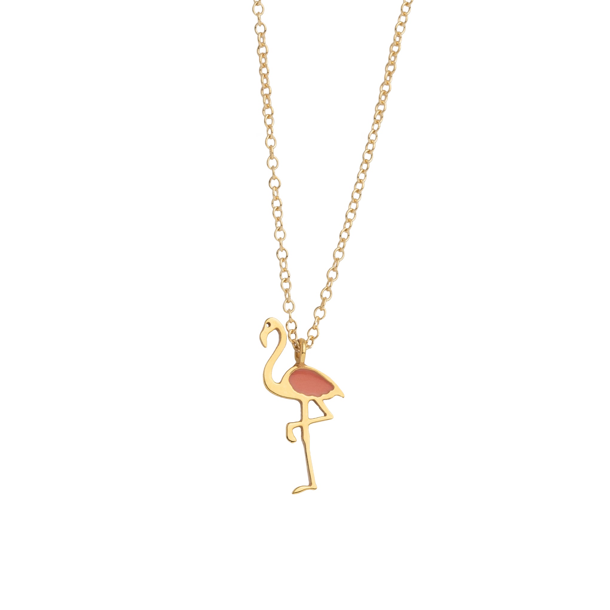 The mini gold flamingo necklace will put you in a tropical mood! The pink flamingo symbolizes life balance: its effortless grace and ability to stand on one leg represent balance and harmony. The most elegant of birds also represents confidence and femininity: be a flamingo in a flock of pigeons!