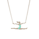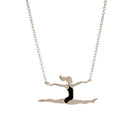 The sterling silver gymnast necklace represents a female athlete performing the split jump. It will be the perfect addition to the jewelry collection of all aspiring gymnasts or gymnastics fans. The graceful and skillfully controlled posture of this very strong gymnast was inspired by the females on the dream US Team 2024 aka Simone Biles, Suni Lee, Jordan Chiles, Jade Carey, and Hezly Rivera.