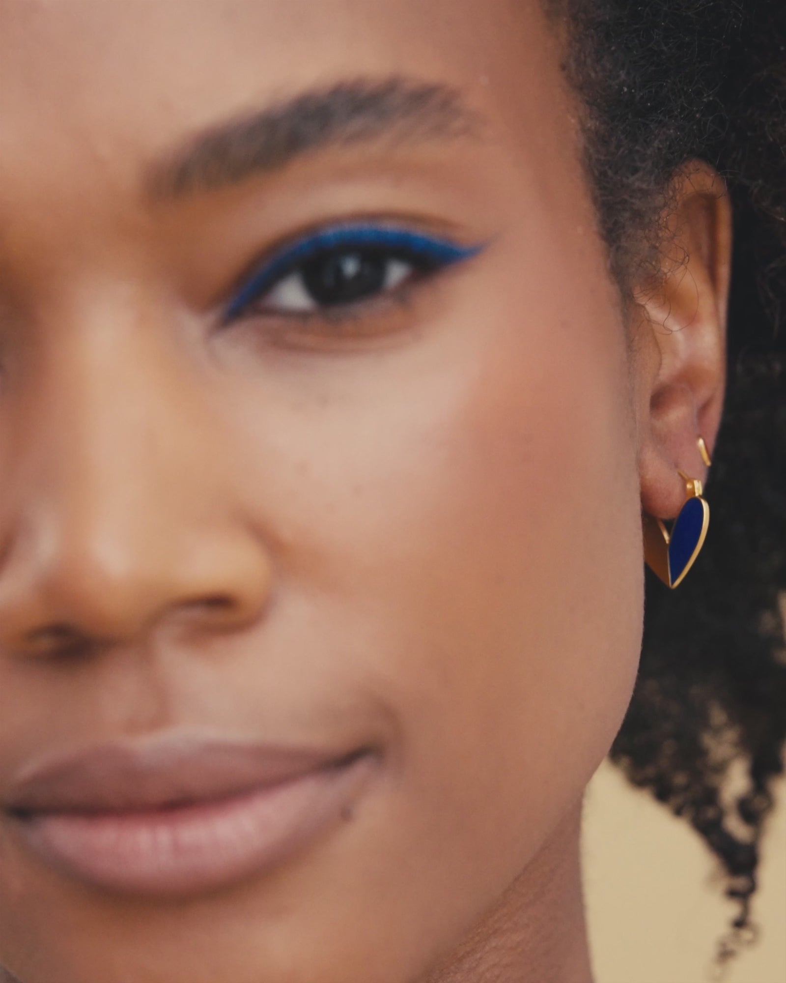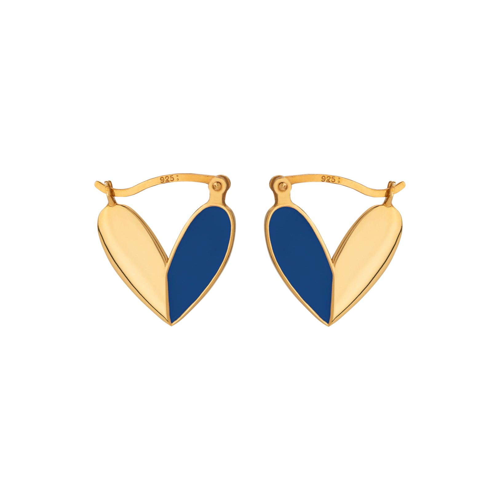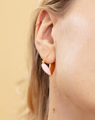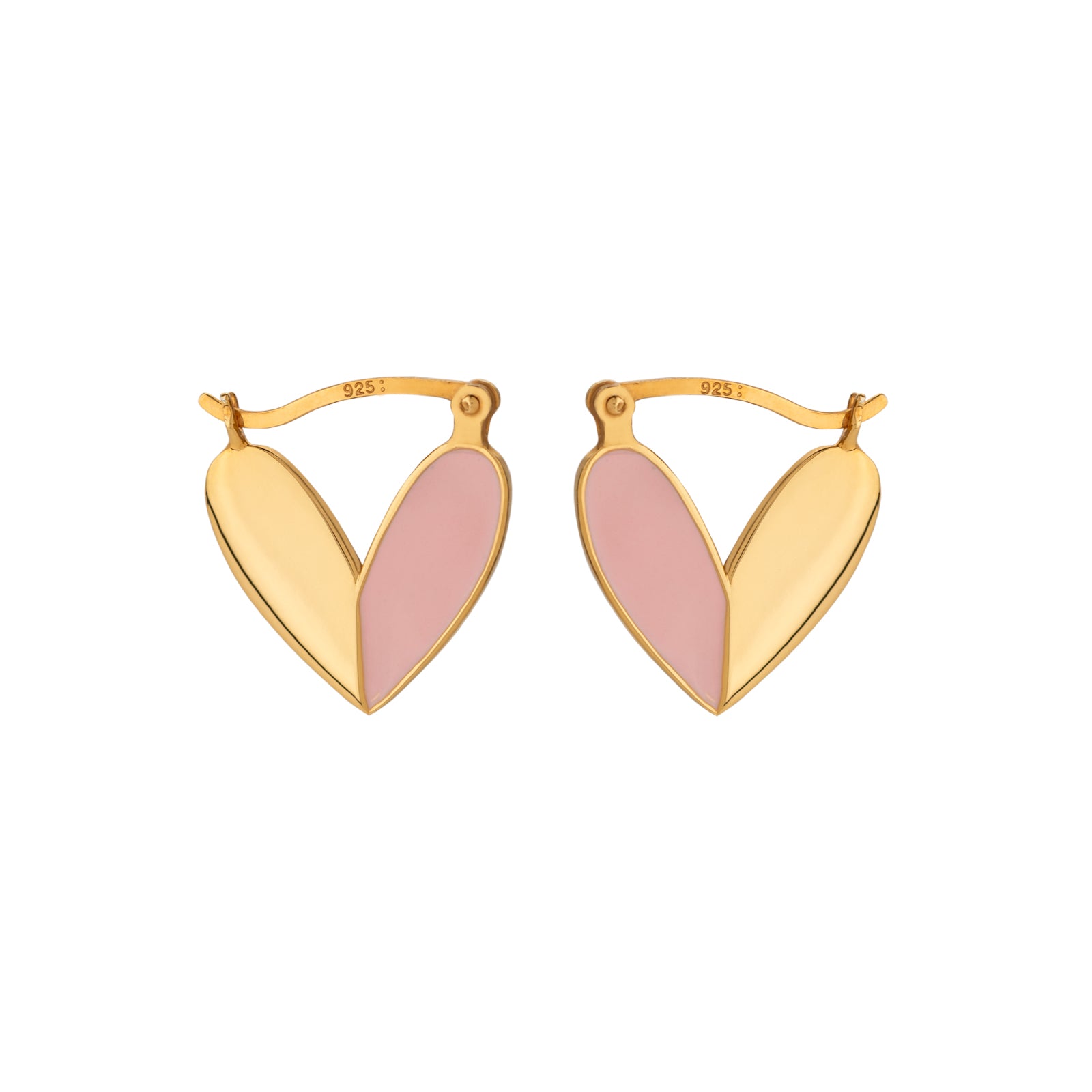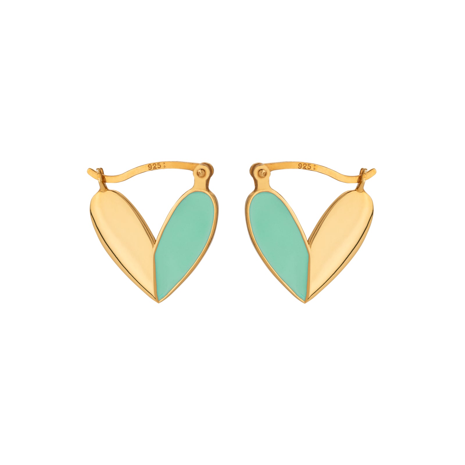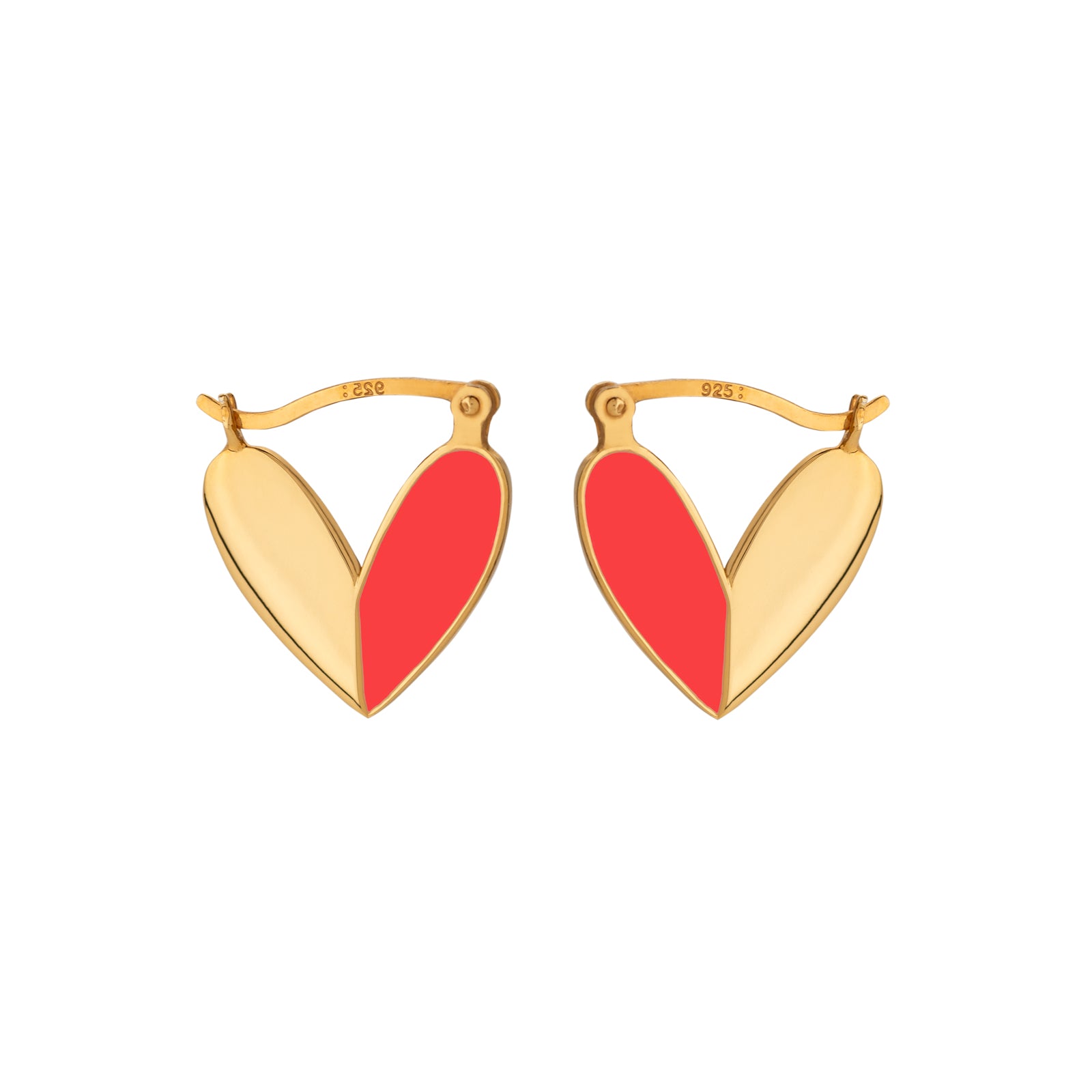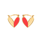 These split heart earrings feature vibrant enamel color on one half. Each piece is hand-enameled with our signature colors. The hinge mechanism makes it easy to put the earrings on with a simple click.