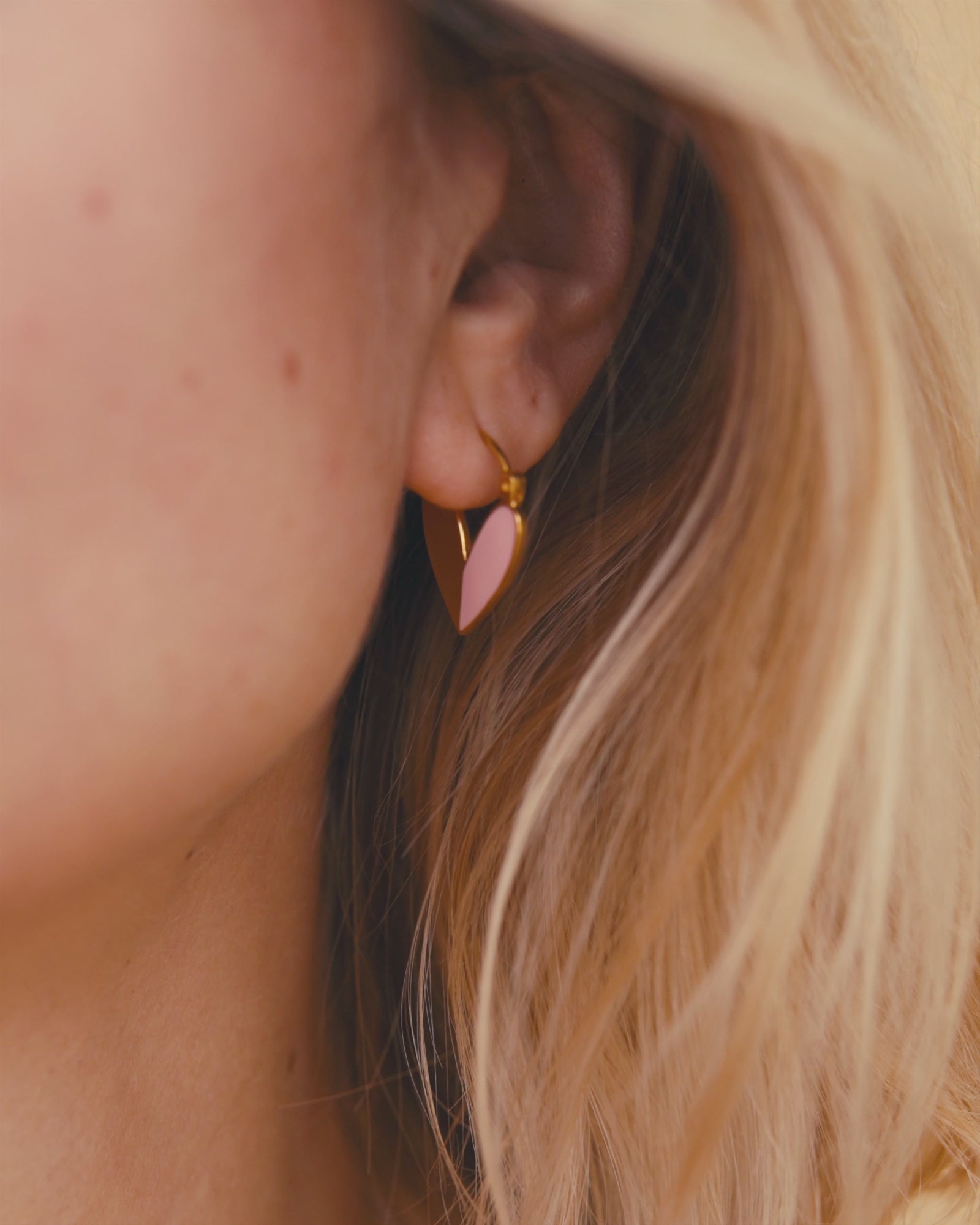 The enameled half of the heart is peaking out to add a subtle touch of color to your face while remaining understated.