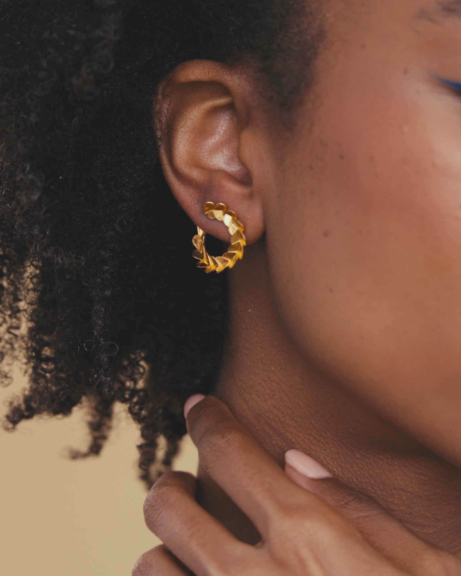 The heart bypass hoops create an interesting optical illusion: their spiral shape wraps seamlessly from the front to the back of your ear lobe. They feature an infinite row of little fluttering hearts, surrounding you with love :)