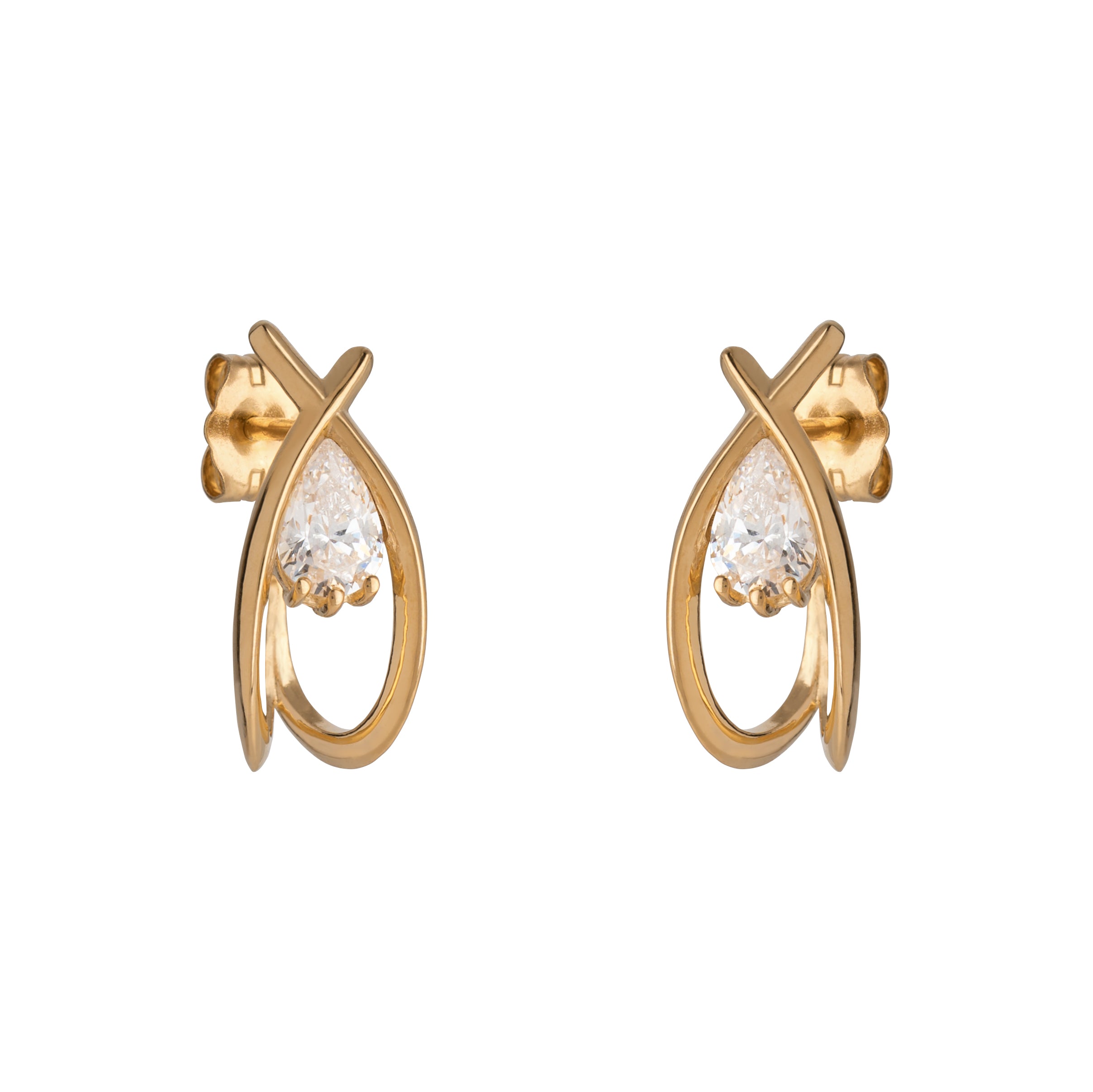 These open hoop earrings feature a fiery pear shape CZ encapsulated between two knife edge wires. Stone size 6mm by 4mm. For more pear shape fine jewelry, make sure to take a look here.