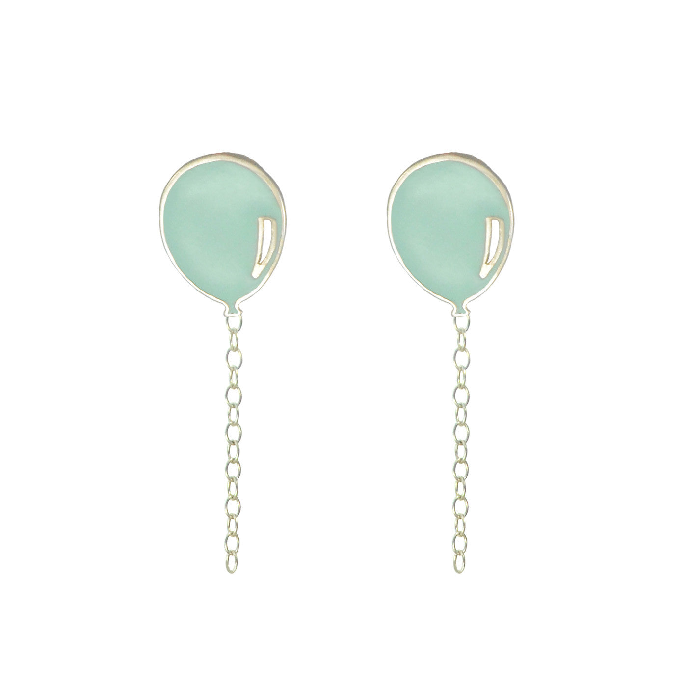 Inspired by festive days, these happy and colorful balloon earrings will add a dash of whimsy to your day. The little sterling silver chain dangles from the balloon stud piece and floats in the air just like strings attached to balloons do.