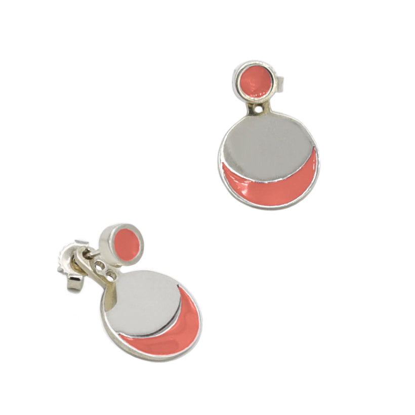 - with the enamel stud in front and plain metal side of the eclipse behind the lobe.