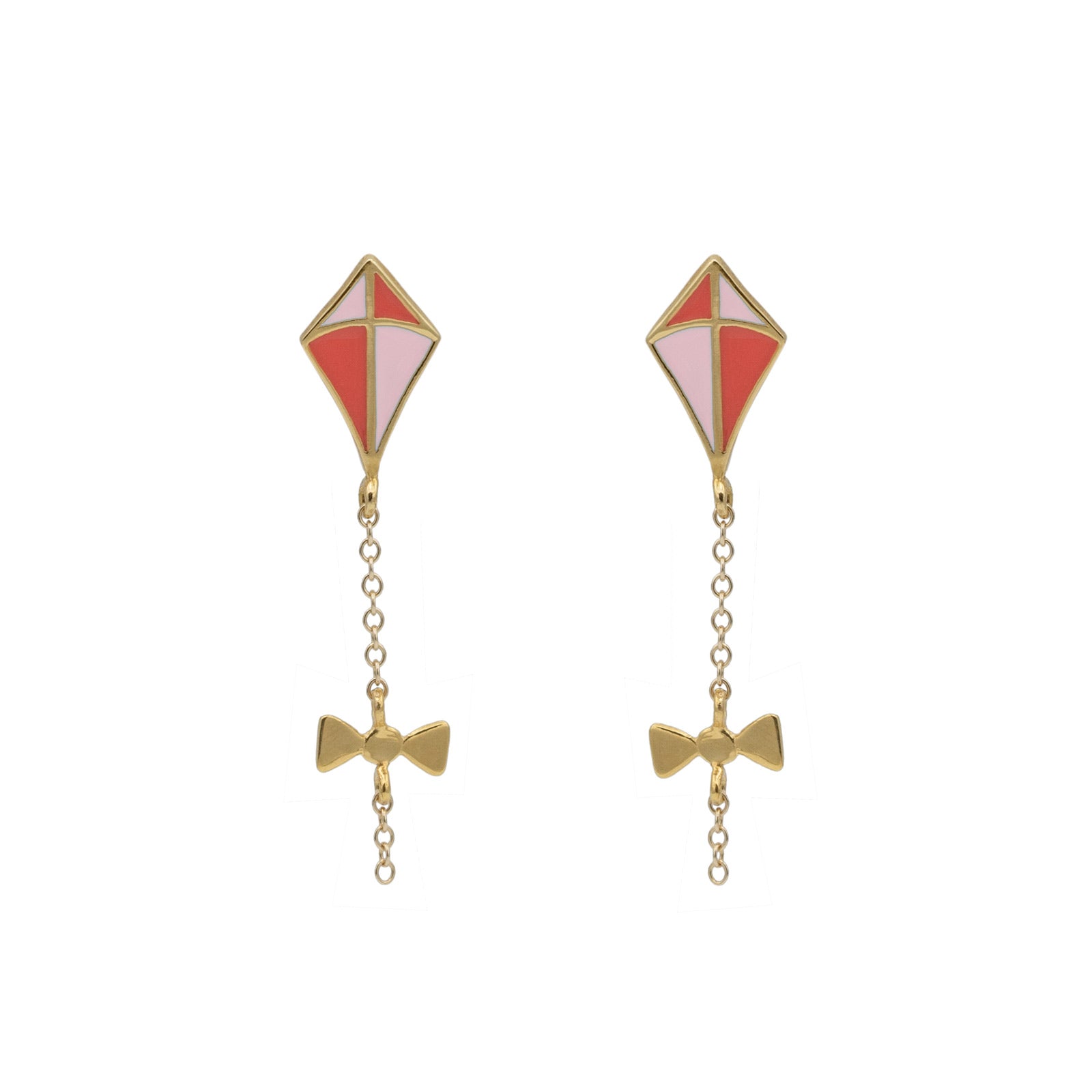 The dainty kite earrings will for sure lift your mood! They come in a variety of enamel colors that you can customize for your taste and outfit. They are very flattering for the face and feature a fun little bow dangling off a 14 k gold filled chain.