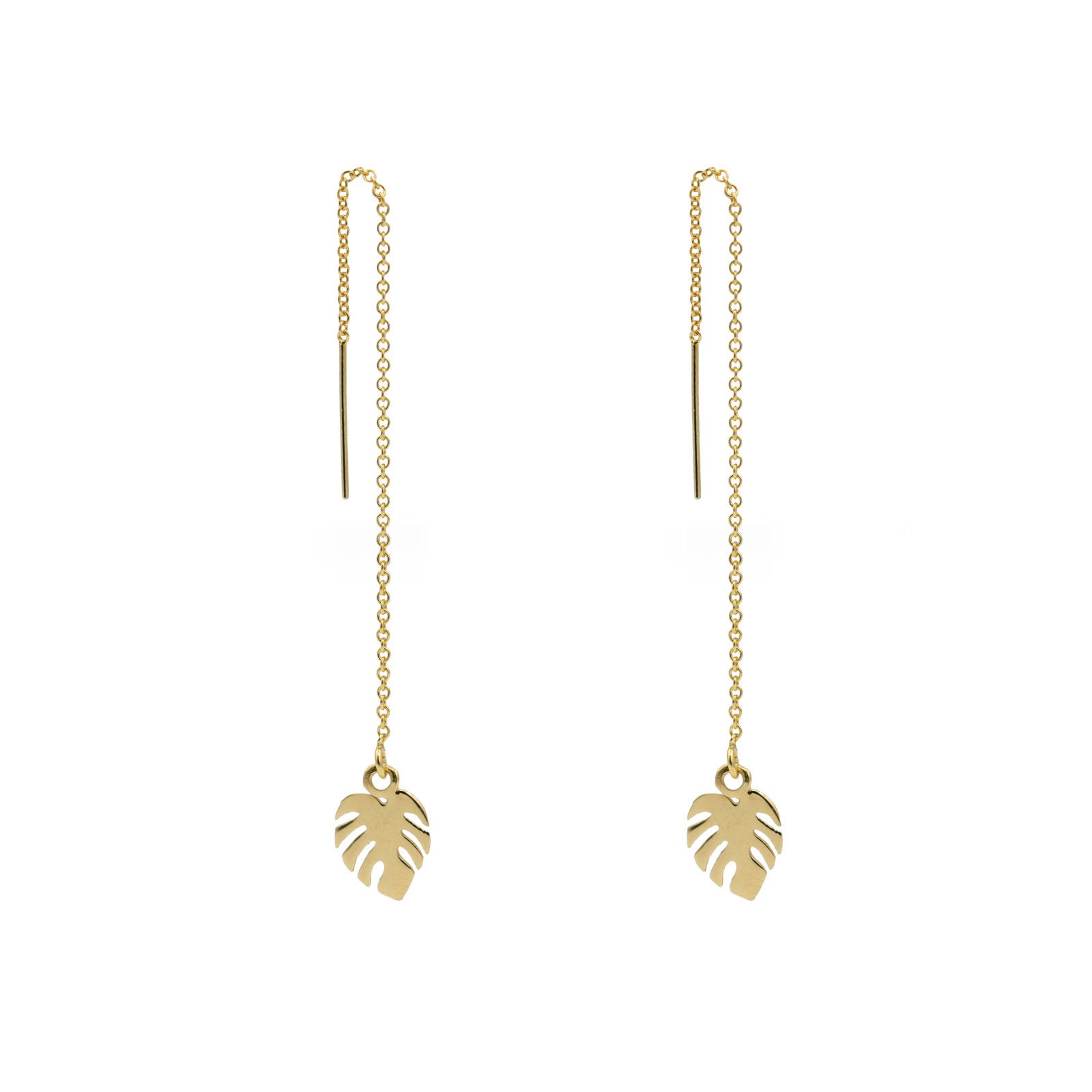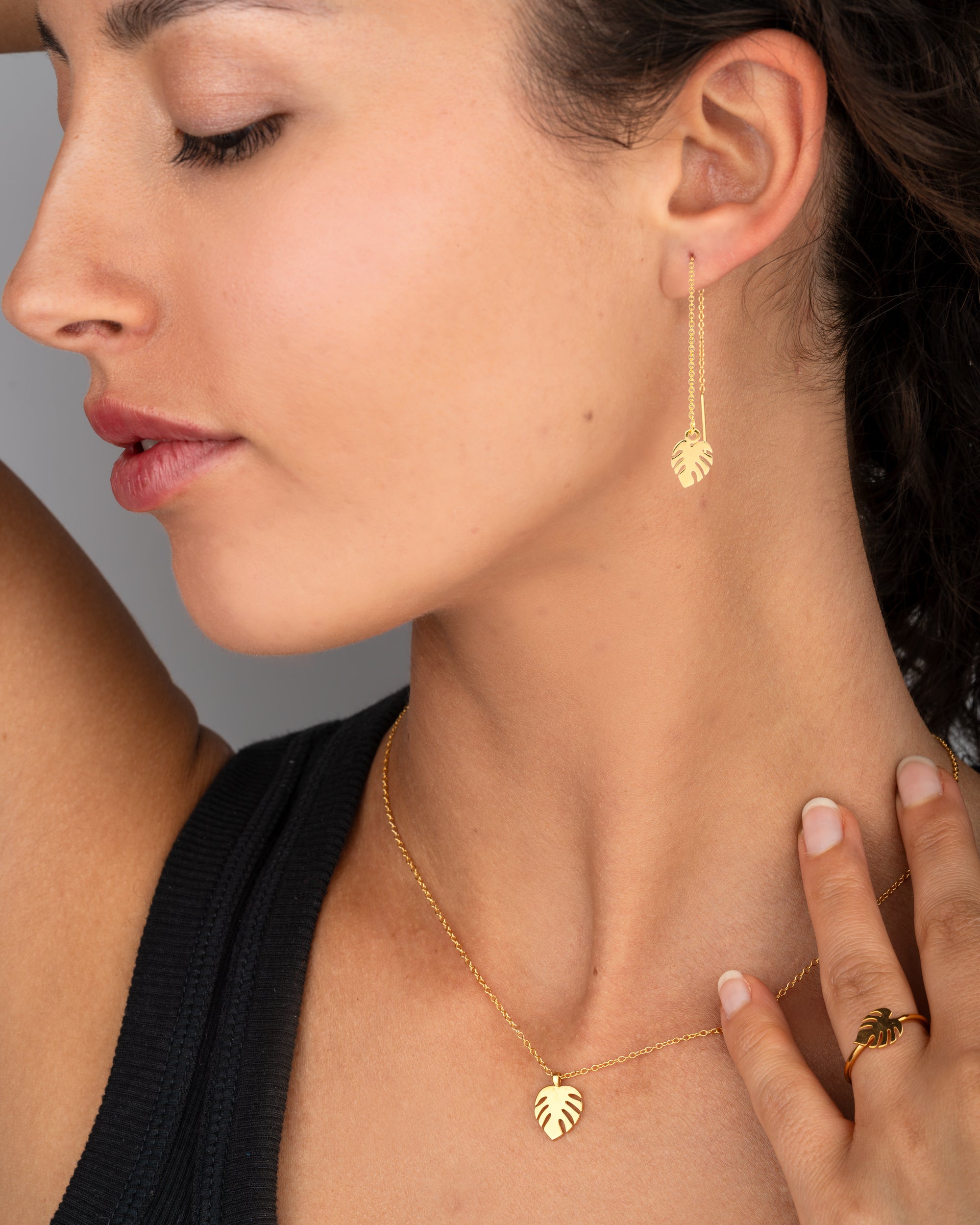 The Monstera ear threaders are beautiful and delicate thanks to their elegant chain and versatile because you can change the length you wear them at by gently pulling the chain to the desired height. They are the newest comer and among the most popular in the Monstera earrings family.