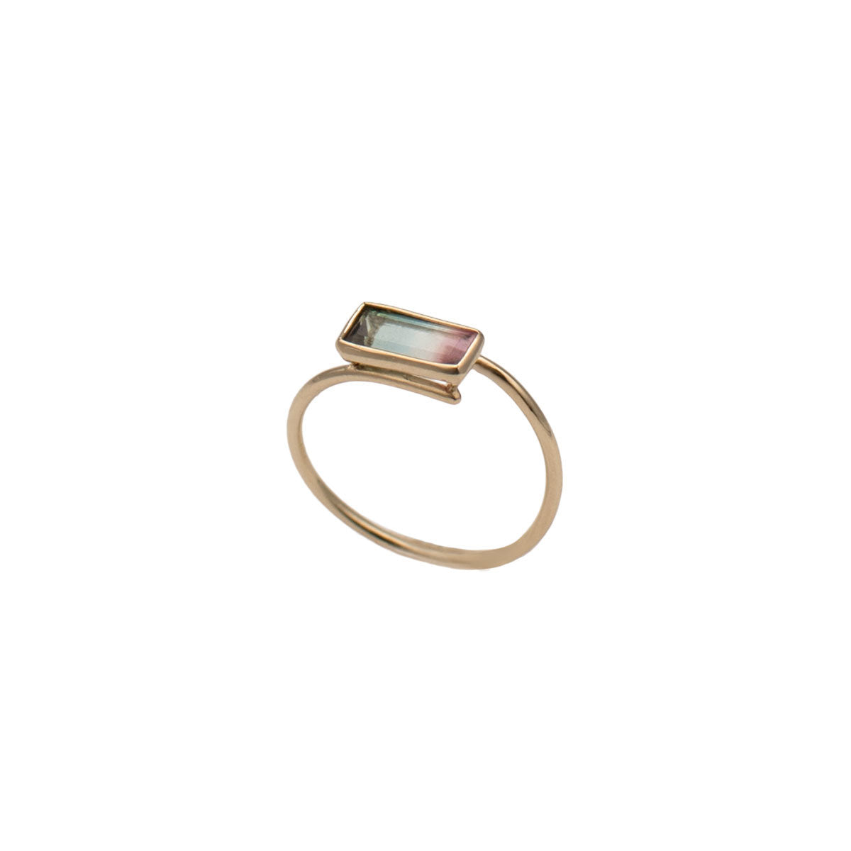 This vibrant Watermelon Tourmaline is embraced between solid 14k gold wire.