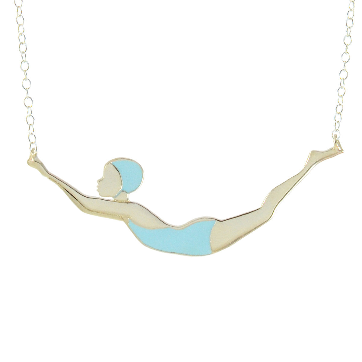 Laura loves keeping it simple when she is swimming, she wears her assorted swim cap and matching vintage swimsuit. Her perfect diving posture makes her look like she is posing for a Jantzen commercial but no, she just strikes the pose to make your neckline more elegant than ever!