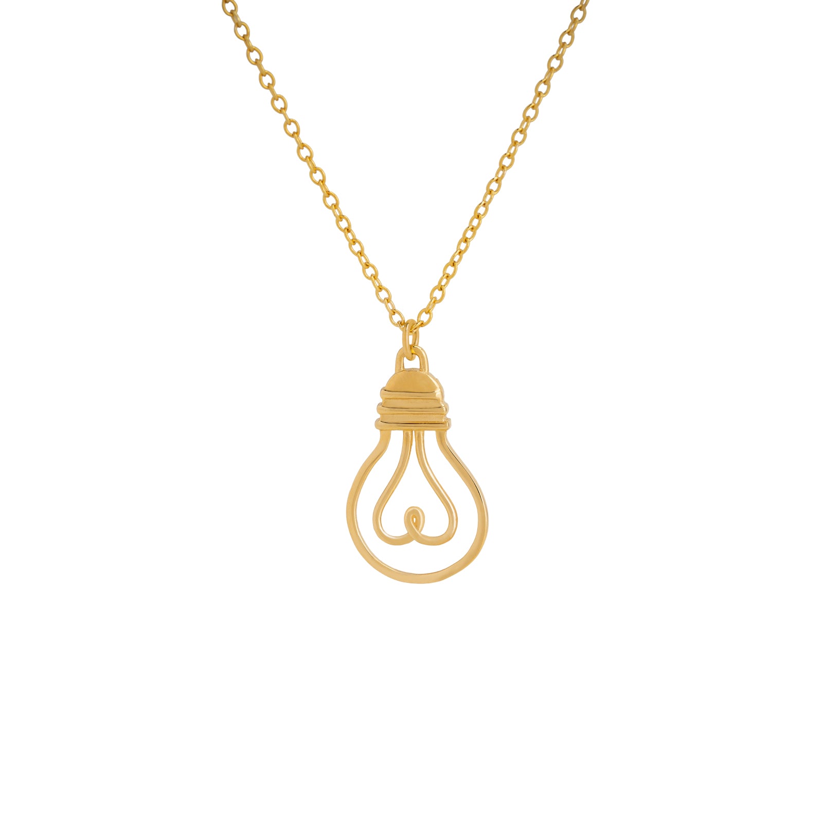 Light up the world with love! This necklace features a light bulb whose filament is in the shape of a heart.