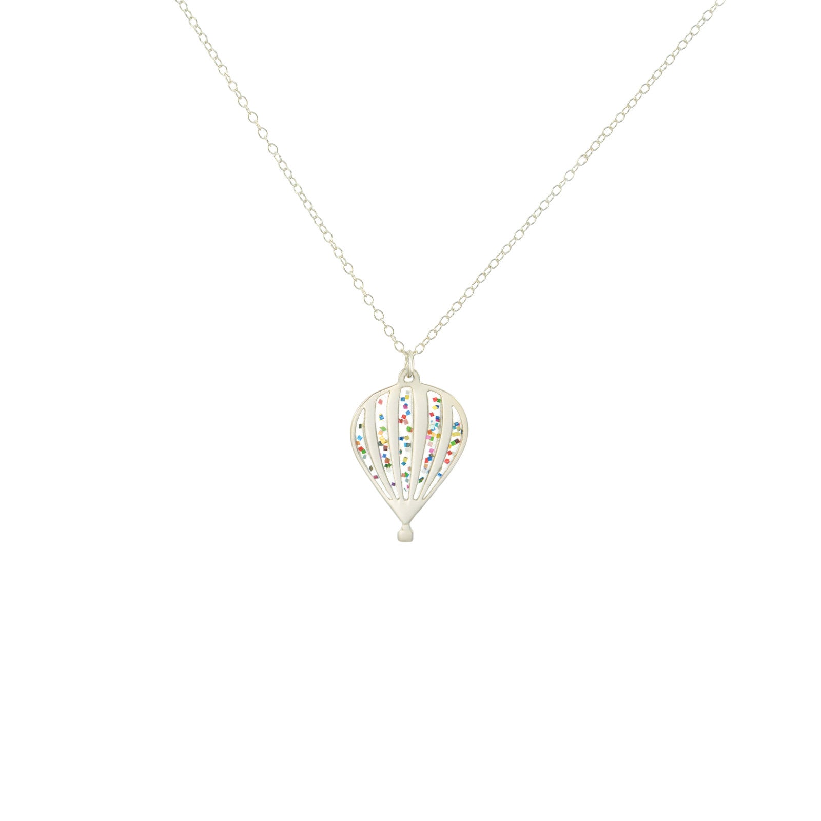 Inspired by the magic of balloon festivals, this necklace is a fun and poetic piece that will add a touch of color in your outfit and put your mind up in the air. This is the mini version of the hot air balloon necklace from which a little guy fell from the gondola.