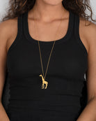 The gold giraffe necklace is about 2 inches high from her feet to her crown. She is a gracious and slender fellow that you will carry around your neck. Do you see the irony? I keep saying her because giraffe is a feminine word in French but feel free to give it your preferred gender!
