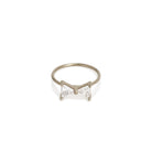 Bright and fiery, the bow tie ring features two white triangle-cut cubic zirconia stones arranged in a clean geometric silhouette for a cute and delicate look.
