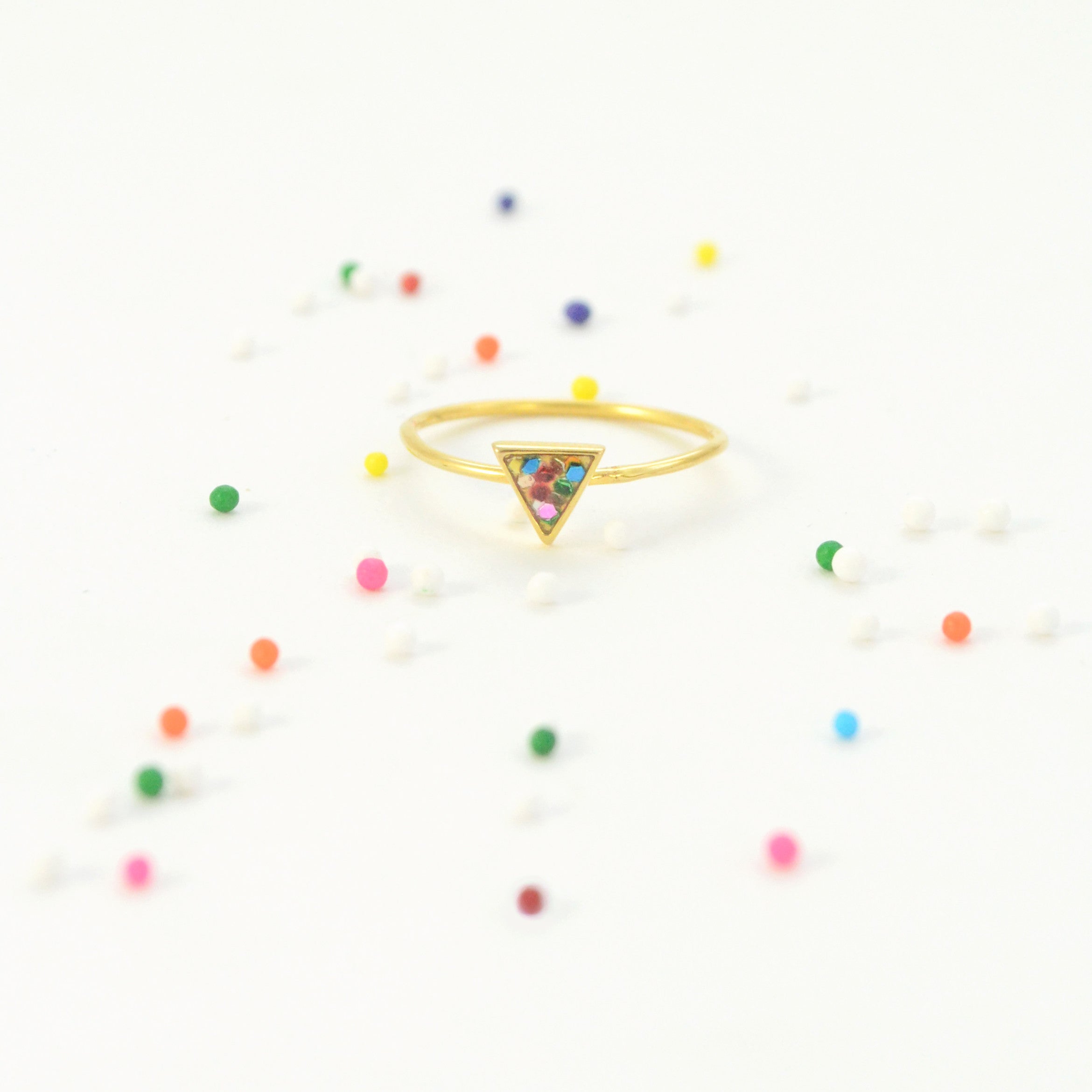 Put a party on your finger with this super cute glitter filled triangle ring! It will make your happy every time your eyes land on your hand :) The ring is hand forged in NYC upon your order.