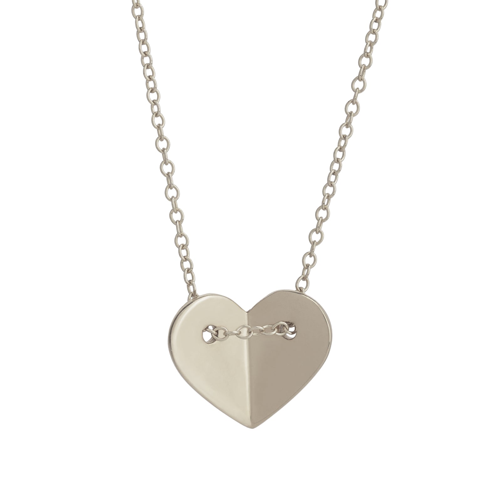 This happy heart is folded in two halves that reflect light differently. The two complimentary sides evoke the duality in each of our personalities and can also represent you and your other half. The way the chain goes through each side of the happy heart necklace gives it a modern look while ensuring it will always hang perfectly.