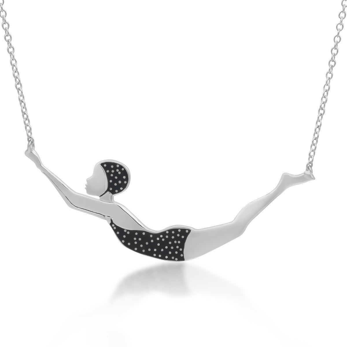 Swimmer necklace polka dots silver