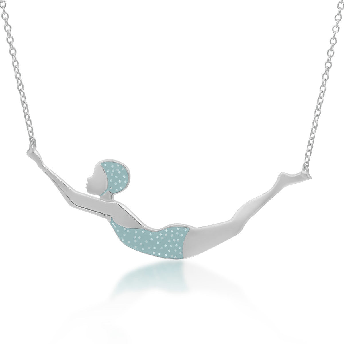 This swimming girl necklace exists in many enamel and finish variations, you will also find all of them here.